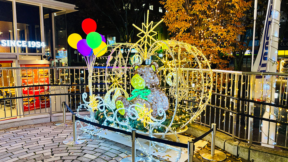 サウスウッド&キーサウスのイルミネーションは日暮れの早い冬の間、夜間の地域安全に貢献するため毎日深夜1時まで駅前広場を明るく照らしています。センター南駅前のイルミネーションとともに、毎年2月末まで点灯しています。