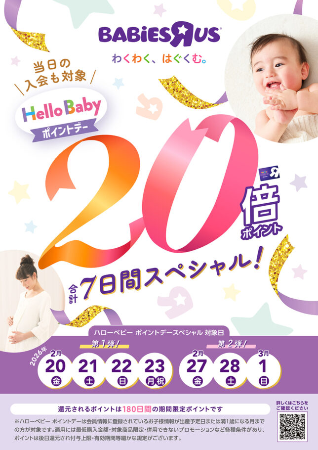 毎月第一日曜日に開催、1歳未満のお子さまの情報をご登録いただいているトイザらスのポイント会員様限定「ハローベビーポイントデー」。